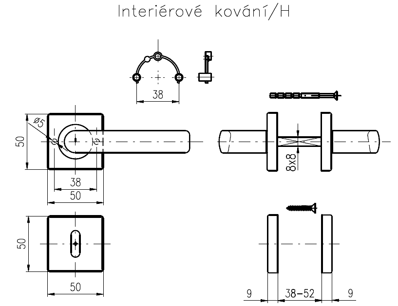 | Typ otvoru - varianta | Bez spodní rozety, Otvor na cylindrickou vložku PZ, Otvor pro obyčejný klíč BB, WC klíč |