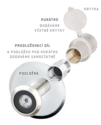 Na silnější dveře Vám doporučujeme zakoupit prodlužovací díl, který se snadno vešroubuje mezi přední a zadní díl kukátka.