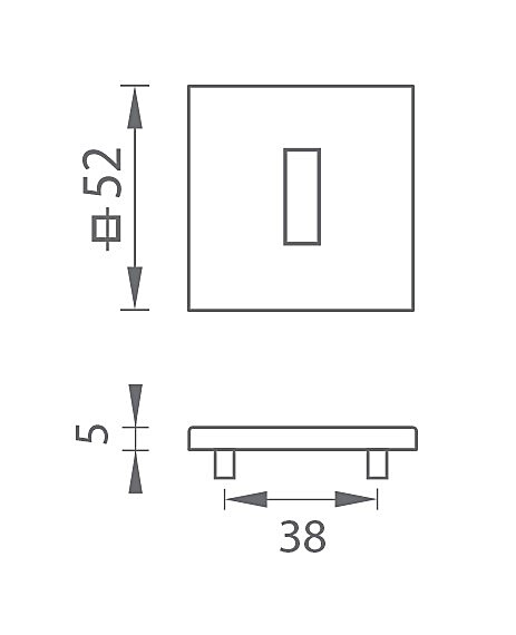Hranatá rozeta je vyrobena z materiálů vysoké kvality - mosaz a je povrchově upravena. Rozeta má rozměry 52 mm x 52 mm, tloušťku pouze 5 mm a hranatý otvor pro interiérový klíč (BBQ), otvor pro cylindrickou vložku (PZ) nebo WC set s vmontovaným klíčem. Balení obsahuje 2 kusy rozet (pár) a rozety WC jsou v balení jako set. Rozeta obsahuje patentovanou TUPAI mechaniku s nylonovo-kovovou podložkou s výstupky, která usnadňuje montáž krytky rozety a zajišťuje stabilní upevnění bez možnosti samovolného pohybu krytky.