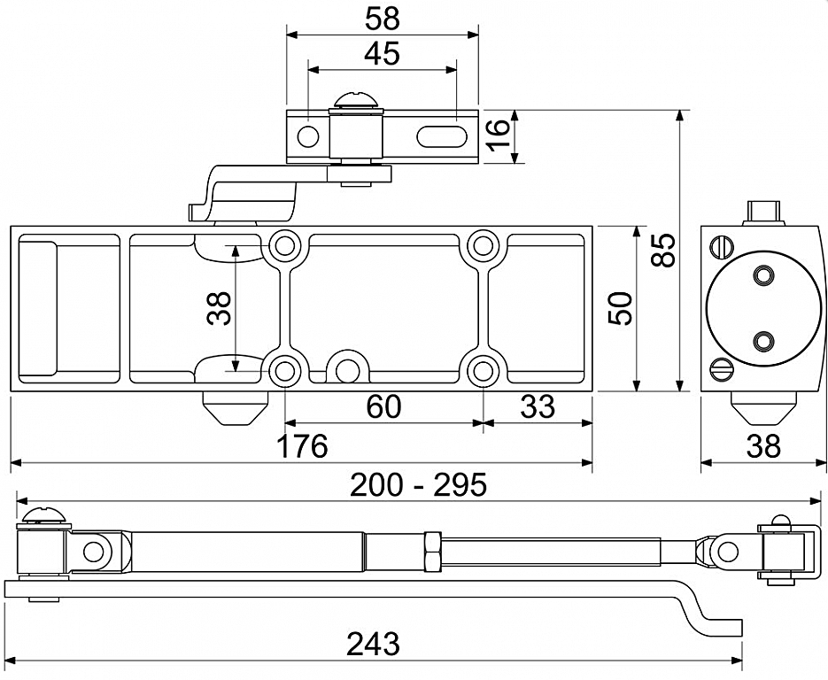 Dveřní zavírač s aretačním ramínkem RICHTER RZ.903.HO.S