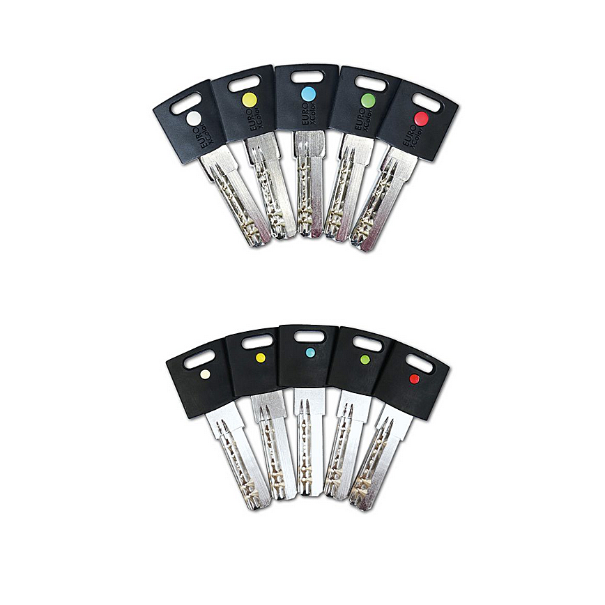 - Příslušné klíče každé vložky obsahují vždy 5 stejných barev pinů: červená (CRV)