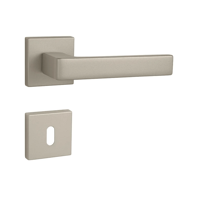 Rozetová klika na interiérové dveře s hranatou rozetou je vyrobena z materiálů vysoké kvality - zamak a je povrchově upravena.