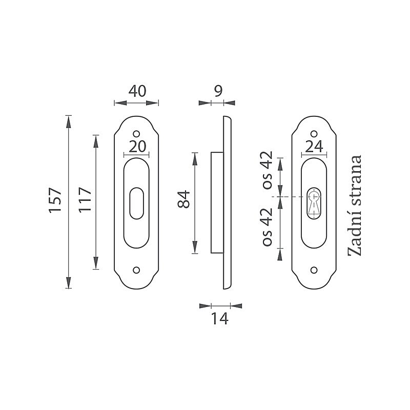 Mušle má výšku 157 mm, šířku 40 mm, zádlab 9 mm a celkovou tloušťku 14 mm.