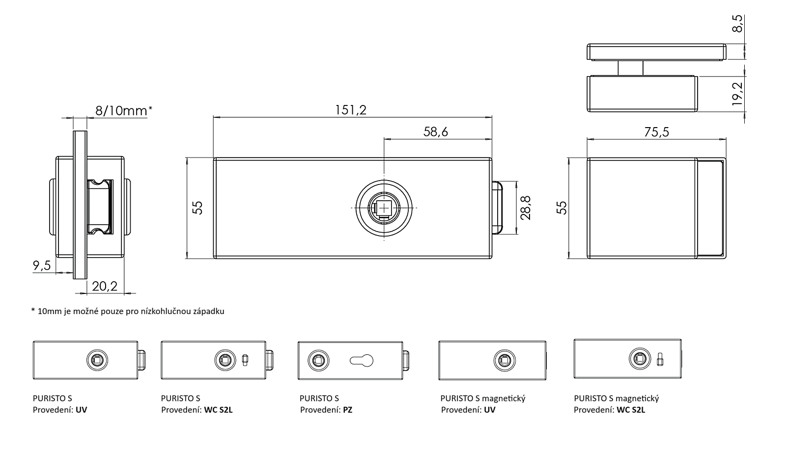 Z nabídky si můžete vybrat tato provedení: UV (bez otvoru), PZ, WC S2L