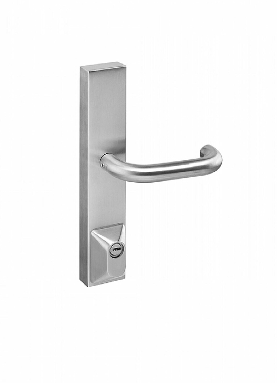 Štítová paniková klika IN.20.950 je vyrobená z kvalitního materiálu nerezavějící oceli s povrchovou úpravou a je vhodná pro panikové kování IN.20.951. Klika má integrovanou cylindrickou půlvložku, nepřechází přes zadlabací zámek.