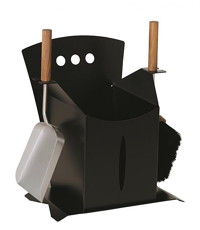 Koš na paletky s krbovým nářadím - smetáček a lopatka ve variantě: