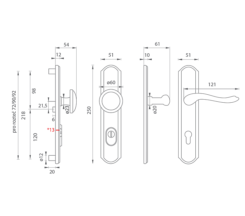 | Rozteč | 72 mm, 90 mm, 92 mm |