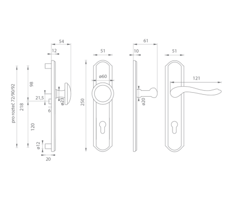 | Rozteč | 72 mm, 90 mm, 92 mm |