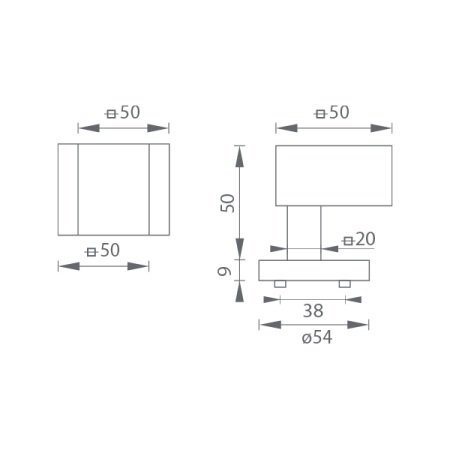 Rozměry madla: 50 mm x 50 mm.