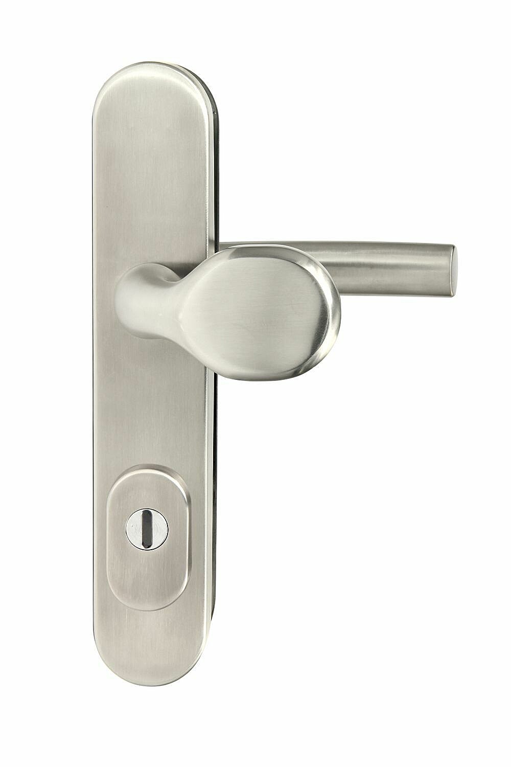 Štítová klika na vchodové a bezpečnostní dveře se zpevněným oválným štítem s překrytím cylindrické vložky je vyrobena z vysoce kvalitní nerezavějící oceli, známé jako nerez a je povrchově upravena. Možnost kombinace všech druhů klik z ekonomické série.