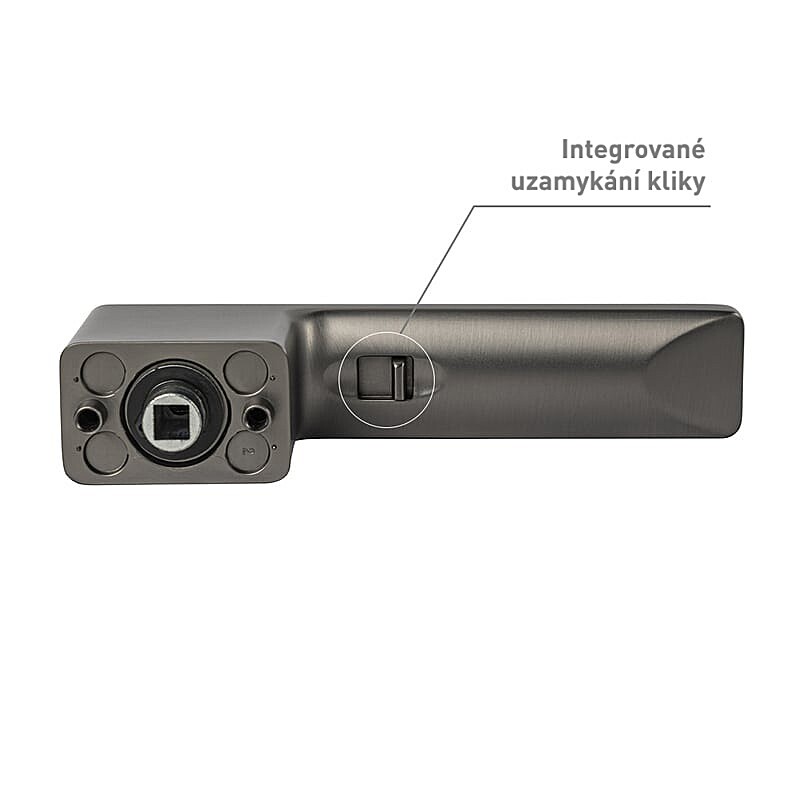 Přední strana kliky je tvořena kovovým krytem v identické povrchové úpravě, který je uchycen pomocí magnetů. Tento detail dodává klice moderní a čistý vzhled.