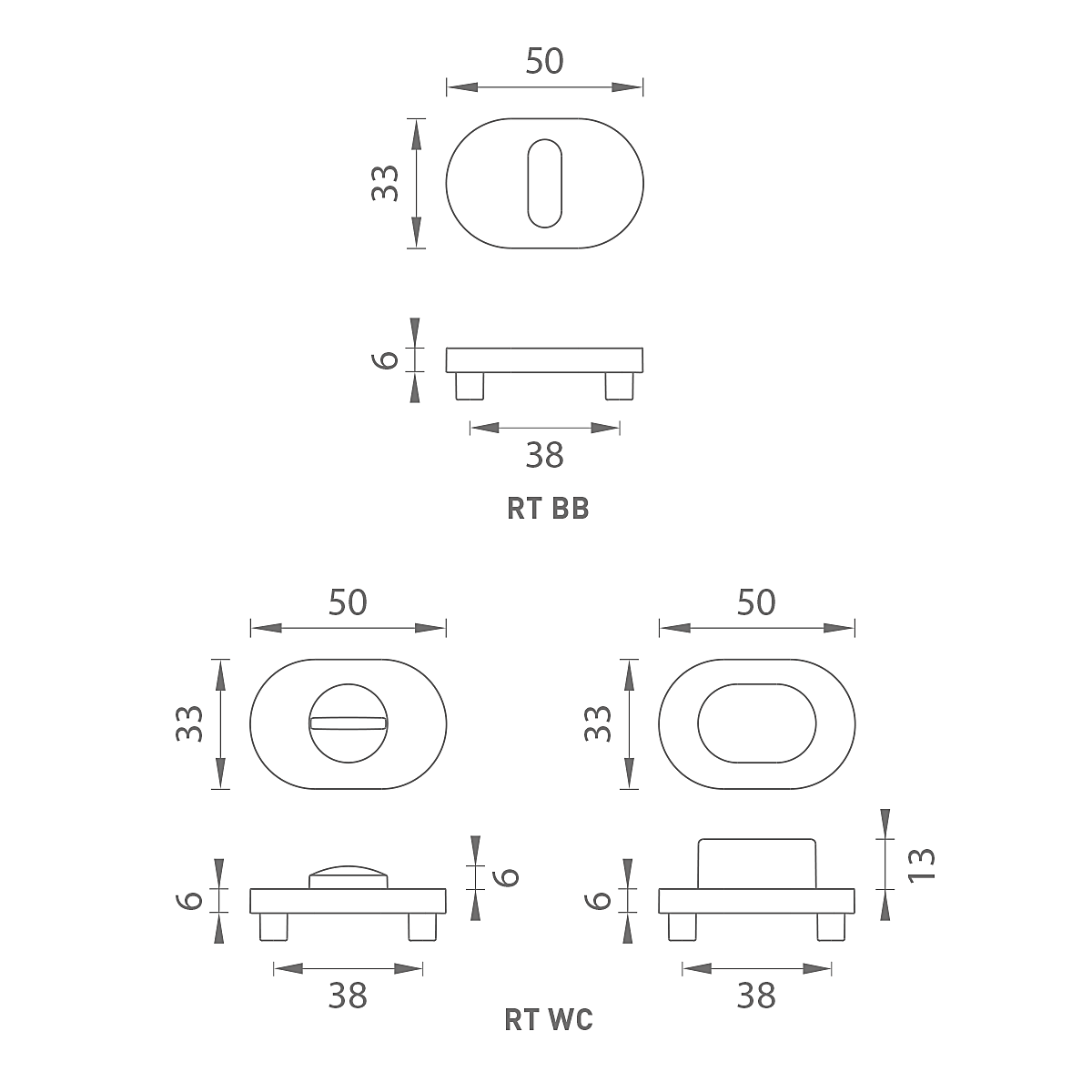 Rozměry rozety: 50 x 33 mm