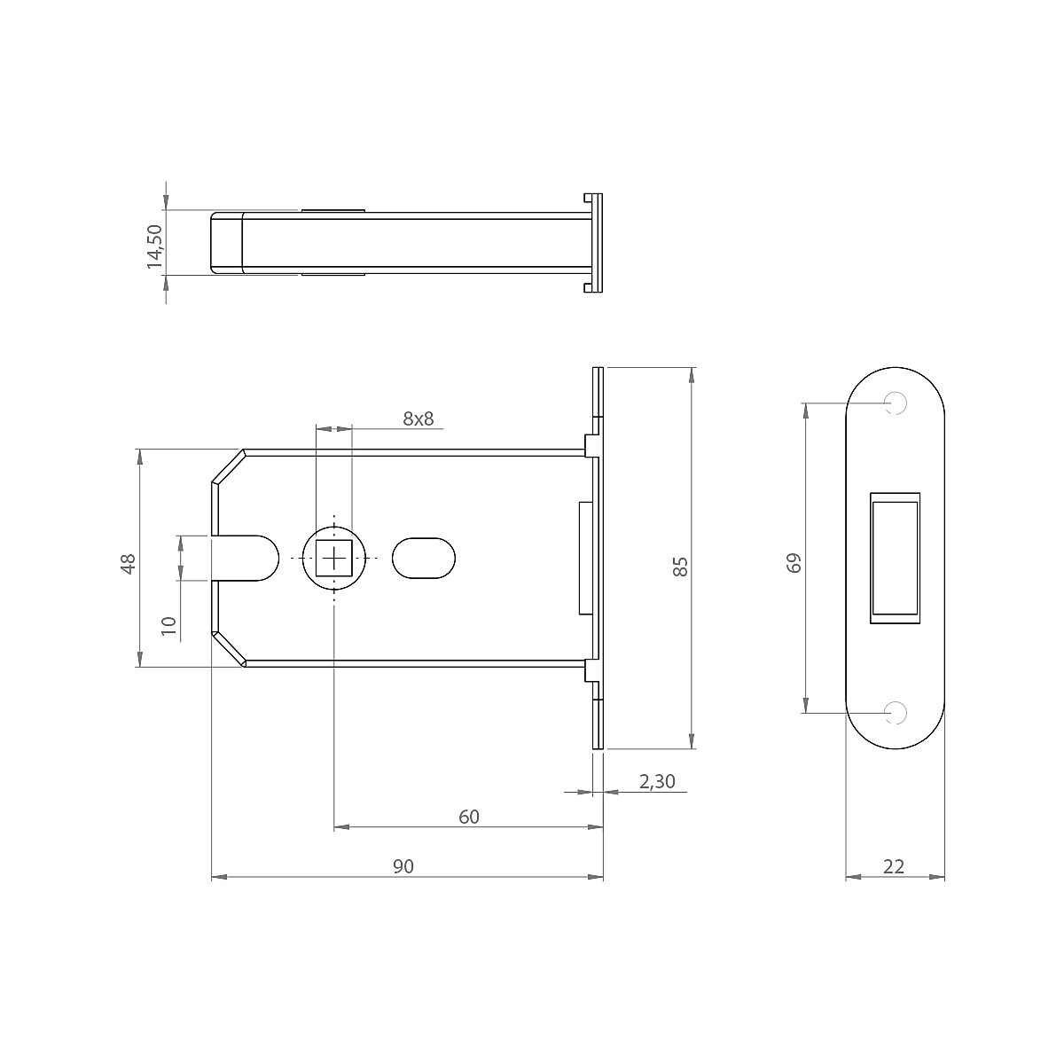 Magnetický zámek je určený pro bezfalcové interiérové dveře, pro kliky bez spodní rozety a kliky s integrovaným uzamykáním. Montážní šrouby jsou překryté elegantní barevnou krytkou. Nastavitelný protiplech k magnetickému zámku je součástí balení.
