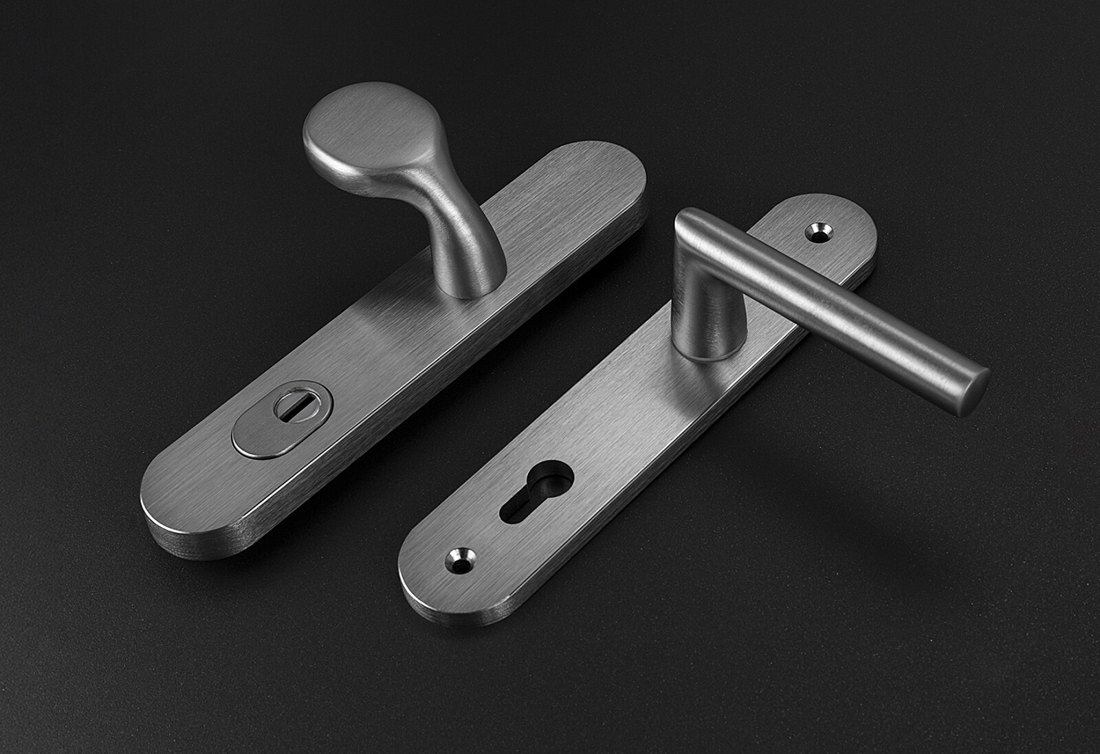Kování je vyrobeno z odolného hliníku, navrhnuté s ohledem na dlouhodobé zatížení a spolehlivost. Dostupné je ve dvou moderních povrchových úpravách F5 - Černá matná a F9 - Nerez elox a ve variantách madlo/klika anebo klika/klika.
