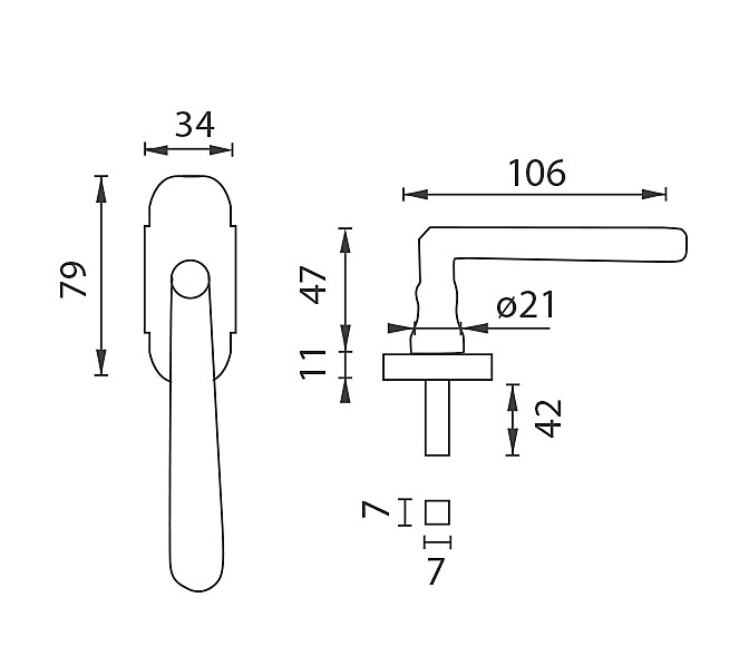 Rozeta má rozměry 34 mm x 79 mm a tloušťku 11 mm.