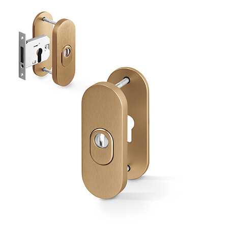Rozety jsou prošroubovány skrz dveře, mají masivní krycí štítek.
