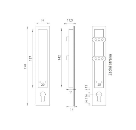 | Typ otvoru - varianta | Otvor na cylindrickou vložku PZ |