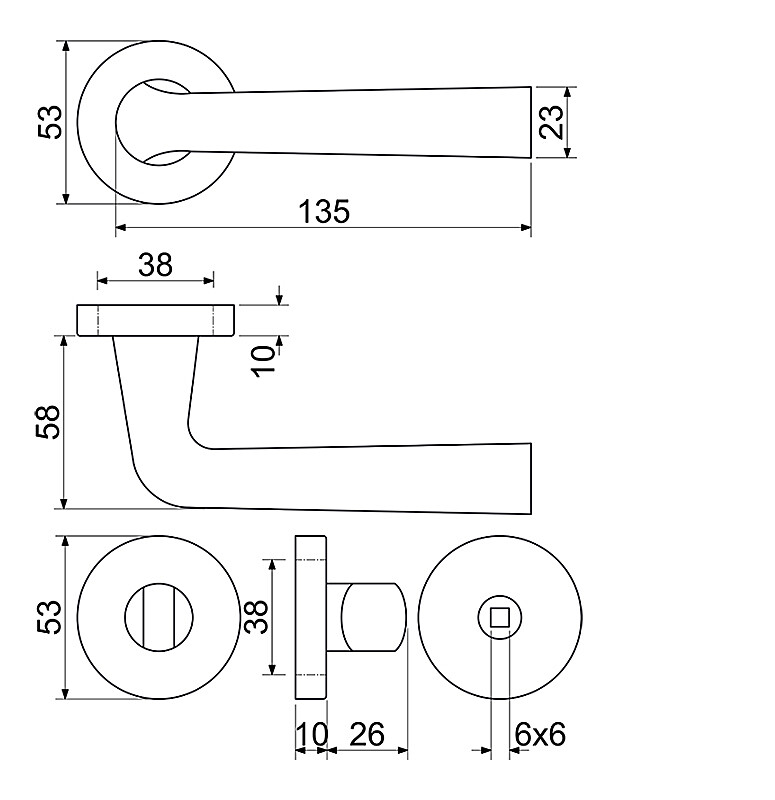 - V provedení WC balení obsahuje čtyřhran o velikosti 6x6 mm a redukci 6/8 mm
