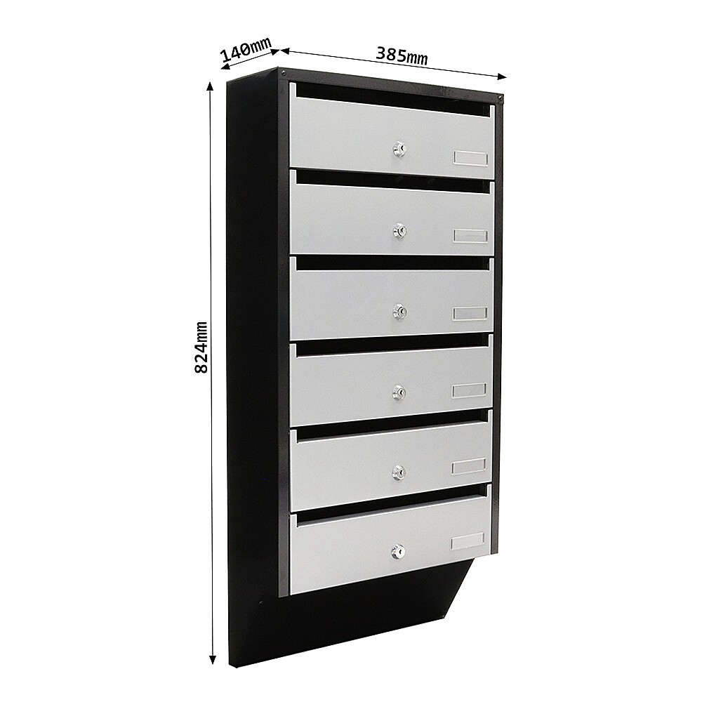 POŠTOVNÍ SCHRÁNKA MP - SESTAVA 6 SCHRÁNEK - DEPOT 6 - T06368 (Stříbrno-černá)