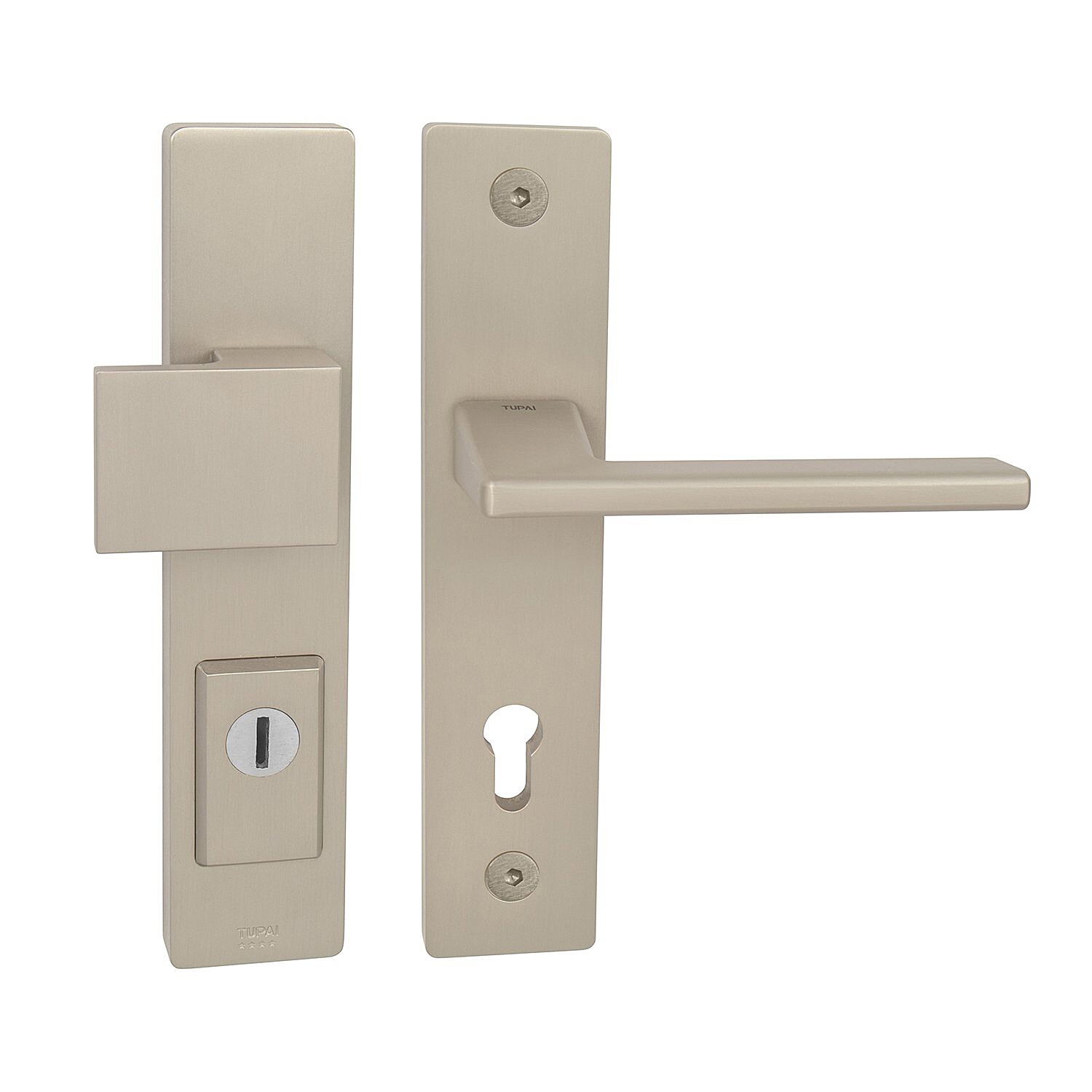 Jelikož jsme se přímo podíleli na vývoji TUPAI SAFETY LINE, můžeme zaručit kvalitu tohoto extrémně odolného kování. Madlo je kotvené na dvou pevnostních šroubech pro celoživotní fixaci bez možnosti samovolného uvolnění. Ocelová závitová pouzdra, která zajišťují prošroubování přes dveře, jsou chráněna ocelovou kuličkou a podložkou proti odvrtání. Ocelové překrytí je uchyceno z vnitřní strany na 4 pevnostní šrouby a výsuv překrytí vložky je nastavitelný do 3 mm. Mechanismus umožňuje uzamykání tahem kliky nahoru. Kování má vlastní vratný mechanismus - pružinu, která zabezpečí vodorovnou polohu kliky nezávisle na zámku.