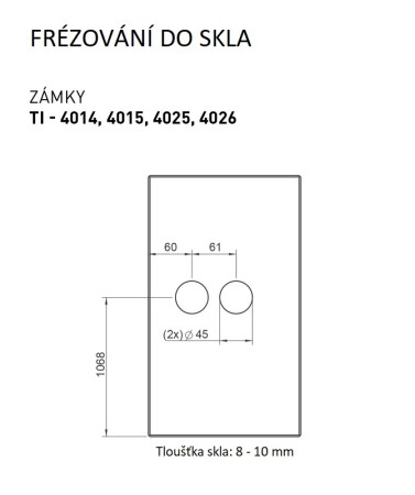 Zámek je vhodný pro skleněné dveře s tloušťkou 8 – 10 mm. Otvor pro kliku obsahuje vymezovací mechanismus pro maximální eliminování vůle čtyřhranu. Mechanismus zámku umožňuje nastavení síly pružiny a napomáhá udržování kliky v horizontální poloze.