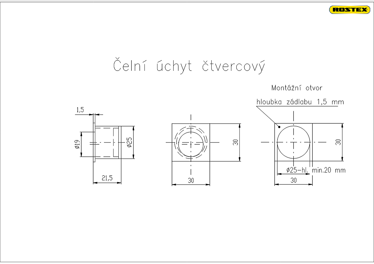 Úchyt čelní čtvercový ROSTEX (nerez mat)