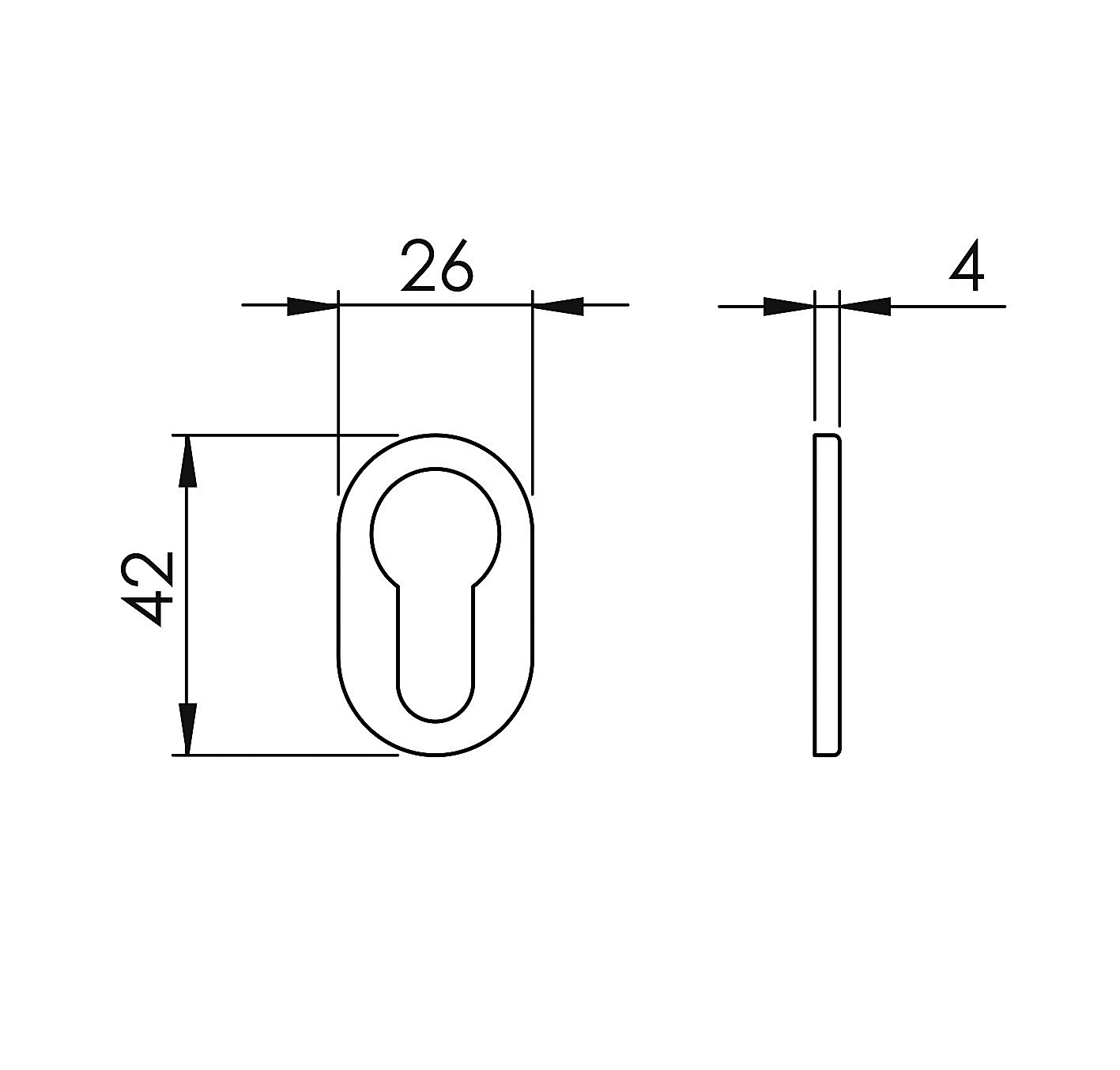 Rozeta má rozměr 26 x 42 mm a tloušťku 4 mm.