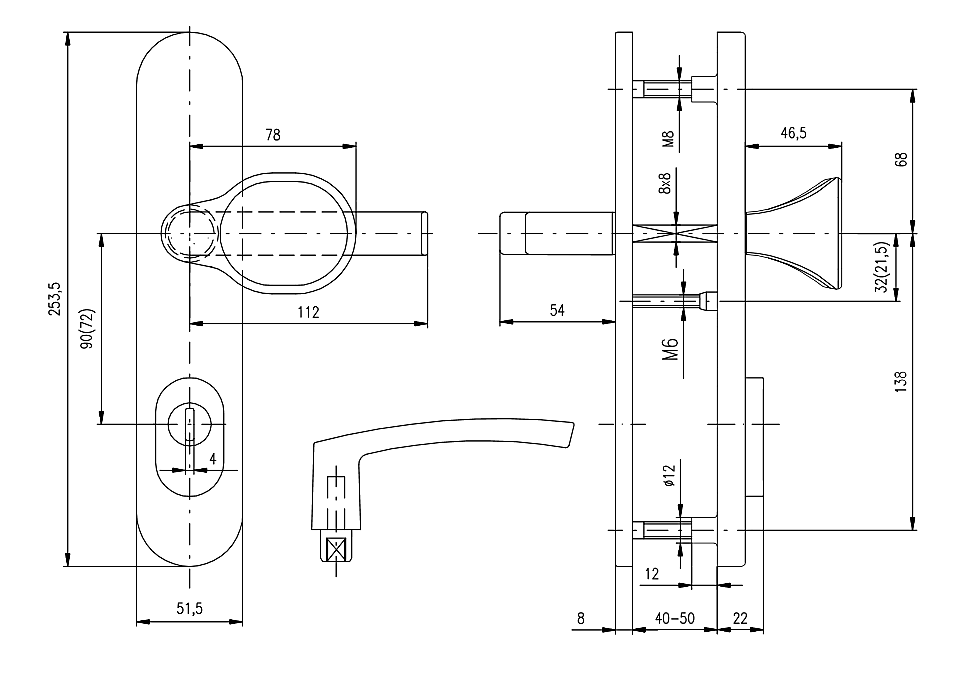 Bezpečnostní kování je určeno na vstupní dveře otevírané dovnitř i ven.