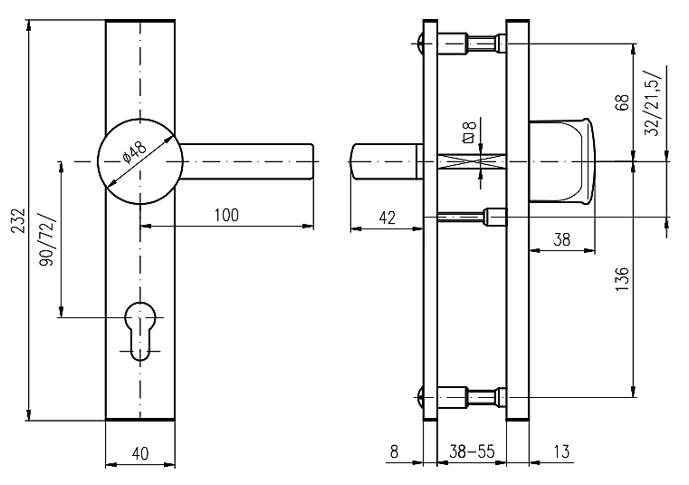 Tloušťka dveří: 67-72 mm