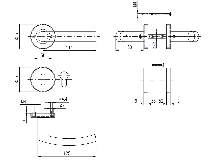 Univerzální klika - lze použít i k bezpečnostnímu kování
