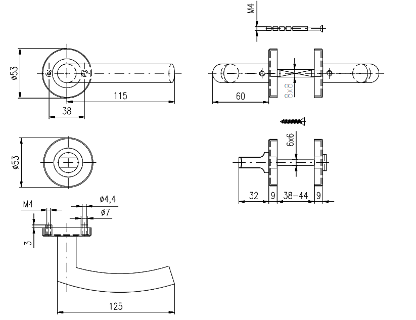 VÝPRODEJ Objektové kování ROSTEX CORTINA s čepy (NEREZ MAT) - BB